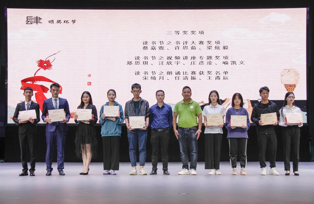 在听过令人热血沸腾的诵读,看过精彩绝伦的表演后,我们迎来了令人激动的颁奖环节,朱征宇副校长、仇恢馆长、校团委书记吴东昇、副书记廖远胜分别为获奖同学颁奖。